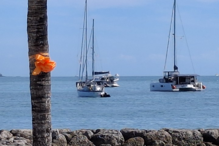 Der Rückweg ist lang und wohlbekannt. Mit Zwischenstopp im Supermarkt. Und wenige Meter vor dem Dinghy plärrt mein Zähler dann: 16,0 Kilometer. Genau in dem Moment merke ich: Das Baguette habe ich im Supermarkt liegen lassen. Einen Kilometer zurück? Für ein Baguette? Ja! Bin ja selbst schuld! Doofmann!