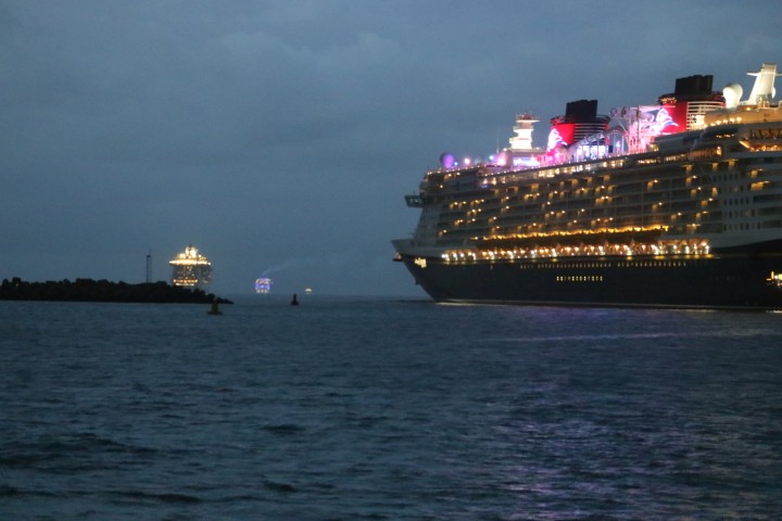 Derweil habe ich wieder – fast – alle Kreuzfahrer raus gejagt. Wie eine Perlenkette ziehen sie nach Norden. (Siehe Bilder!). Und verschwinden dann im Regenschleier.