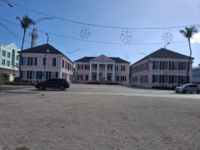 Entnervt beschließe ich dann erst mal, meinen 11 km Walk nach Nassau West zu machen. Auf dem Rückweg bemerke ich entsetzt, dass ich die Strecke inzwischen „hirnlos“ laufe. Denn – hier war ich doch noch nie??? Doch! Es ist der „Parlamensplatz“! Nur – hier stand sonst IMMER eine Tribüne. Nun ist die mal abgebaut. Sofort mache ich Fotos…