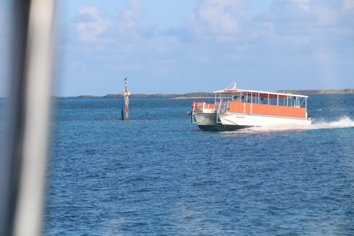 Früh aufgewacht, Sonnenaufgang abgewartet, seeklar gemacht. Kurz nach 8 Uhr geht es ankerauf, unter Motor aus der Bucht und an den vorgelagerten Inseln vorbei ins freie Wasser. Klar, dass an der engsten Stelle wieder der Fähren-Katamaran entgegen kommt?!