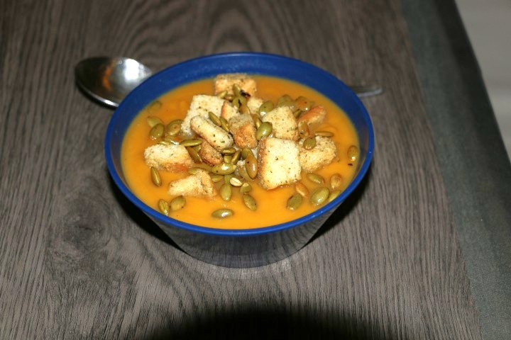 Und auch innen wird möglichst viel auf "null" gebracht. Ein Riesentopf Kürbis-Süßkartoffel-Suppe gibt ein schönes Essen und einen ordentlichen Vorrat im Gefrierfach...