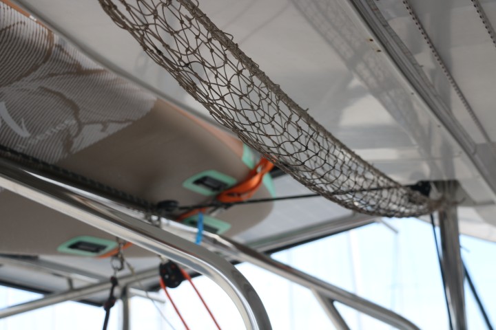 Hier noch was wegräumen, da noch was befestigen. Halt Restarbeiten. Ach ja – Packen. Ich nehme ja auch noch ein paar Sachen mit… Am Ende ist alles ziemlich leer - siehe das Netz für Obst und Gemüse. Auch das Schlauchboot ist "geschützt". So wird RE einige Monate nun warten müssen...