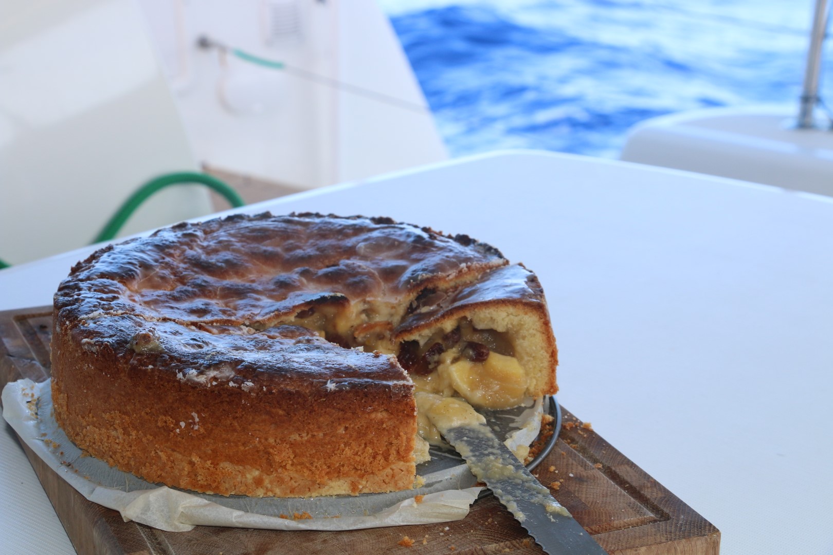 Geschmacklich gar nicht schlecht. Und das nicht nur am Seemannssonntag. Am Freitag bin ich guter Kunde, der Rest wird in Portionen eingefroren. Tage später kommt von Michèle: Es ist nicht mehr viel Apfelkuchen da! In der Nacht, kurz in der Mikrowelle aufgetaut ist das so was von prima… Da muss ich nun nicht nachforschen, ob der etwas geschmeckt hat!