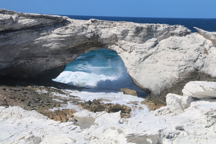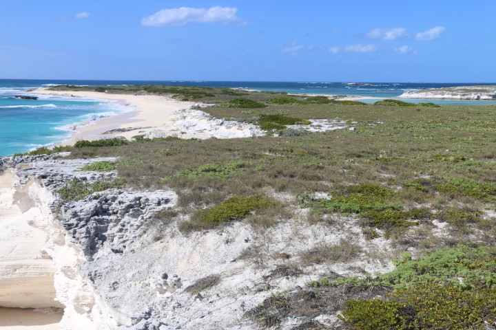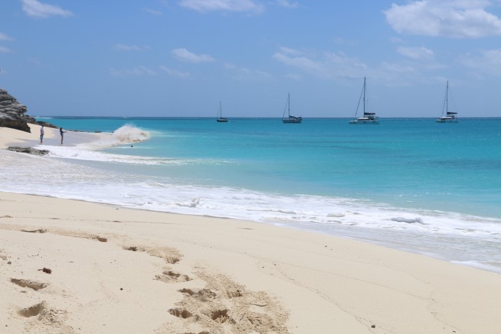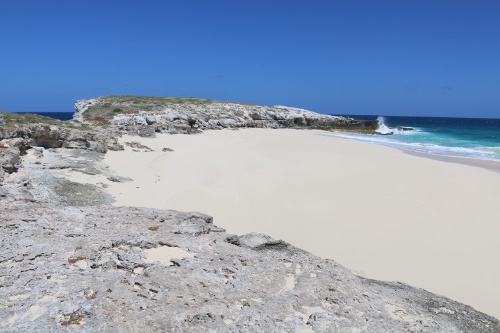 Die Felsformationen, der schöne Stand an der Westseite, die Wellen – das alles ist wunderschön. Hier beginnt also die Karibik, so wie man sie sich erträumt. Die VITAMIN SEA Crew hat nicht genügend festes Schuhwerk mitgebracht und so stapfe ich alleine um die Insel.