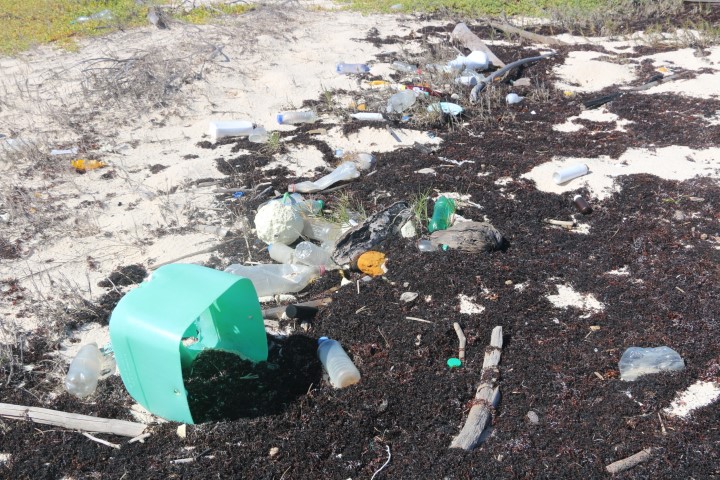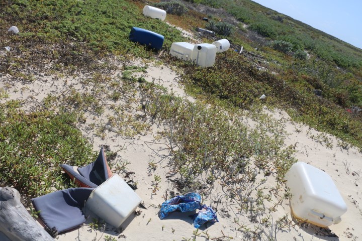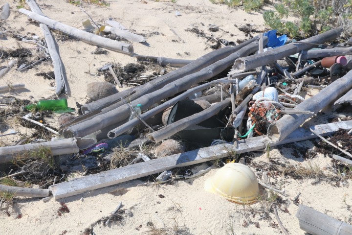 Während auf „unserer“ Seite – der windabgewandten – die Welt in Ordnung scheint, sieht man mal von den Wracks ab, wurde es schon beim ersten Weg über die Mitte schlimm. Und nach meiner Kehre an der Südspitze geht es auf der „windward“ Seite weiter – durch Plastik-Müll! Insbesondere hinter der Hochwassermarke liegt alles, was das Meer so zu bieten hat. Viel Fischerei-Zubehör und ganz viel Zivilisationsmüll. Dazu dann noch etliches Neues. Das müssen über Bord gegangene Container sein. Die Forschung sprach 2016 noch von knapp 570 Containern im Jahr. Langfristig stehen 2022 dann schon knapp 1570 und über drei Jahre wieder 2022 schon 2300 Container zu Buche.