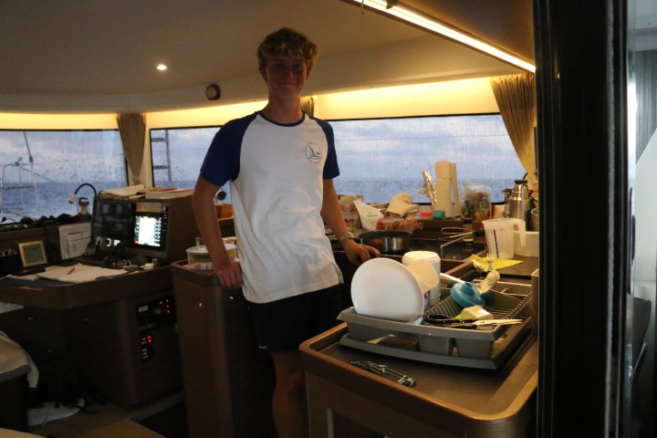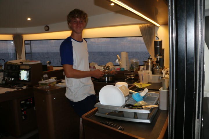 Zunächst geht der Kurs nach Norden und wir versuchen, alles aus RE raus zu holen, dass die VITAMIN SEA uns nicht so abhängt. Als dann der Kurs mehr nach West geht, können wir die Doppelfock setzen und sind (das erste Mal!!) schneller als die VITAMIN! Hurra – wir holen auf! Und ich kann beruhigt schlafen, nicht nur, dass wir uns nicht so sehr abhängen lassen, nein, Nico geht ja Wache! Gute Nacht!