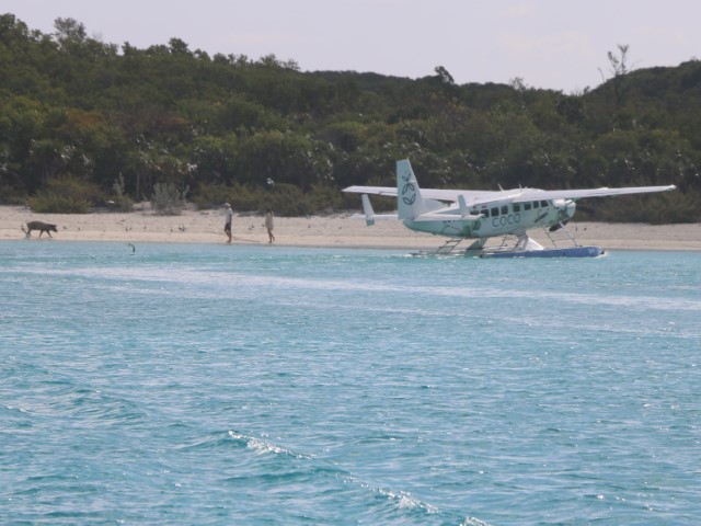 Während ich am Morgen noch an einem Beitrag (23.04.) sitze, höre ich ein ulkiges Geräusch: Also ein „Fixed-Wing“ (Tragflächen-Flugzeug) hört sich anders an. Aber wie ein Hubschrauber hört es sich auch nicht an. Und wie ich noch zweifle, klatscht es an Steuerbord runter: Es ist ein Wasserflugzeug. Landet direkt neben RE und gleitet aus zu den „Swimming pigs“. Ein paar Minuten später „fährt“ es raus und startet quer zum Wind. So kann man die Attraktionen der Bahamas wahrscheinlich an einem Tag „machen“…
