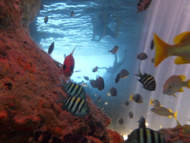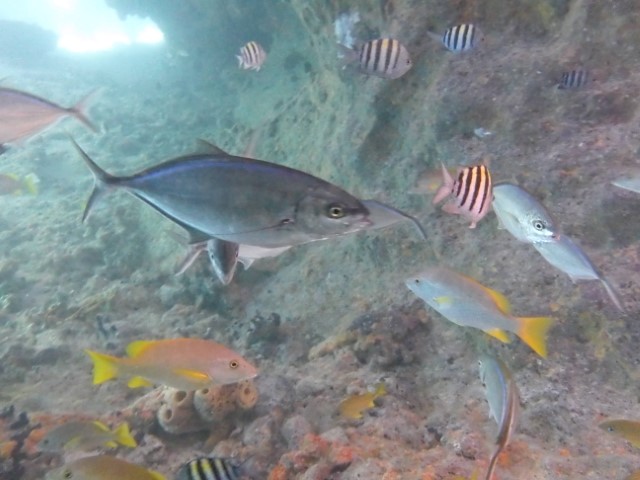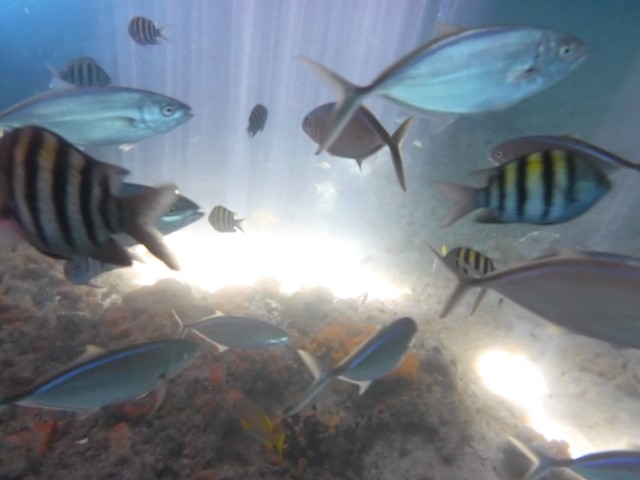 Zum Mittag werde ich dann von der VITAMIN abgeholt. Wir betauchen heute die James-Bond-Grotte, die in Thunderball gedreht wurde! Ein phantastisches Erlebnis! Alle tauchen begeistert aus den verschiedenen kleinen Ausgängen raus! Während ich einmal um die ganze Insel schwimme, springt Anna durch eines der Löcher in der Decke in die Höhle. Aber nach einer guten Stunde wird es langsam – trotz Shorty – kühl. Und das geht nicht nur mir so. Bald trudeln alle bei den Dinghys ein. Mögen die Bilder und Filme für sich sprechen! (Auf Instagram ist der von Peter (JUNE) zu sehen: Einfach mal oben auf der Homepage auf das Insta-Symbol klicken!.