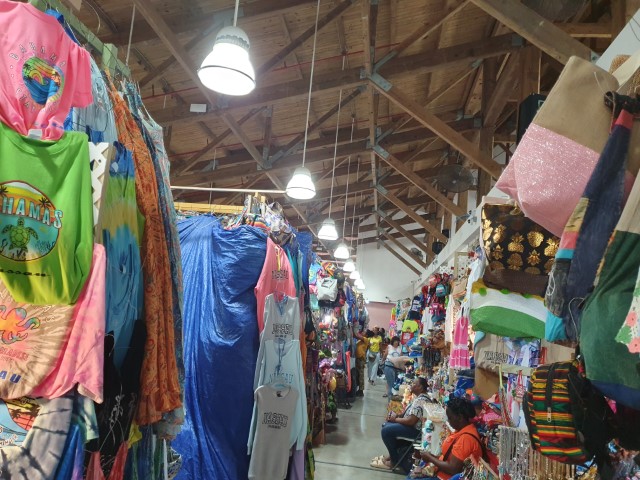 Auf der Promenade ein Blick zurück zu den Boten. Nassau Downtown im Bereich der Kreuzfahrer-Pier ist sehr touristisch. Natürlich kehre ich im „World famoust Straw Market“ ein… Und auch schnell wieder raus.