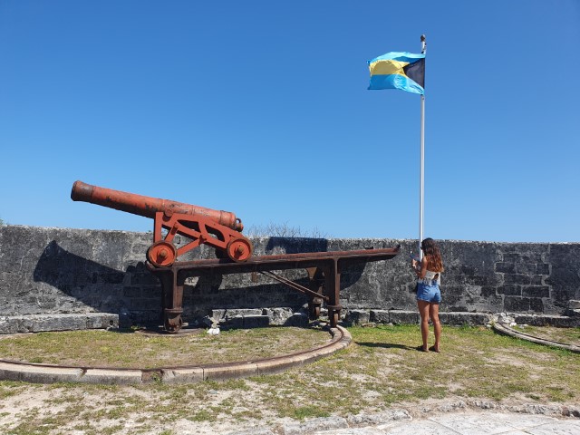 Anstatt 4 Räder bringen mich 2 Füße hoch zum Fort Fincastle. Nun – das ist dann nicht so der Weg, den die Kreuzfahrer gehen…. Das Fort wird durch einen gestrengen Herren bewacht. Für 3 Dollar Eintritt kommt man rein. Wenn man ein Ticket will, dann muss man noch 10% VAT drauf legen. Gut – ist mir egal. Ich will ja nur rein…