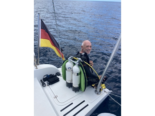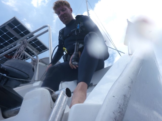 Auf RE werden dann alle Flaschen gefüllt. Die KISS hat zwar selbst einen Kompressor an Bord, aber so können wir zusammen sitzen und sparen Benzin. Bei mir kommt es ja aus der Solar-Anlage…. Ach ja, hatte ich erwähnt dass wie den Tauchgang als obersuper empfanden? Hihihi!