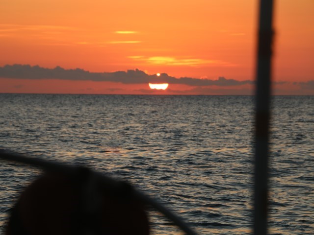 Gegen Abend biegt die VITAMIN SEA in die Bucht ein. Ein fröhliches Wiedersehen mit verspätetem Sundowner. Anna alarmiert uns. Eine unglaubliche Sternen-Konstellation im Himmel. 12, 13 oder sind es 14? leuchtende Punkte ziehen am Himmelszelt hoch. Dann wird klar: Eine Starlink-Kette. Gerade noch beleuchtet von der Sonne, leider kommen wir zu spät auf den Gedanken, das zu fotografieren. So sieht man nur noch 4 davon….