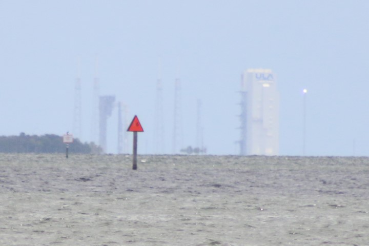 Im Internet sehe ich dann, dass es wohl eine Verschiebung von 22:09 auf 22:16 gegeben hat. Trotzdem stehe ich um 9 Minuten nach klar zum. Aber klar: Es tut sich nichts. Um 22:12 kommt der Life-View mit Countdown. Prima, im Fernglas kann ich nun Rakete und Startvorrichtung erkennen. Im Fotoapparat ist es auch bei maximalem Zoom recht klein…