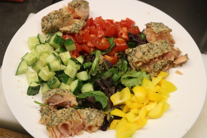 Nun – und niemand soll sagen, ich lasse es mir schlecht gehen. Mit Aldi und Walmart gibt es schönes, frisches Obst und tolle Salate. Heute zum Abendessen: Siehe Bilder!