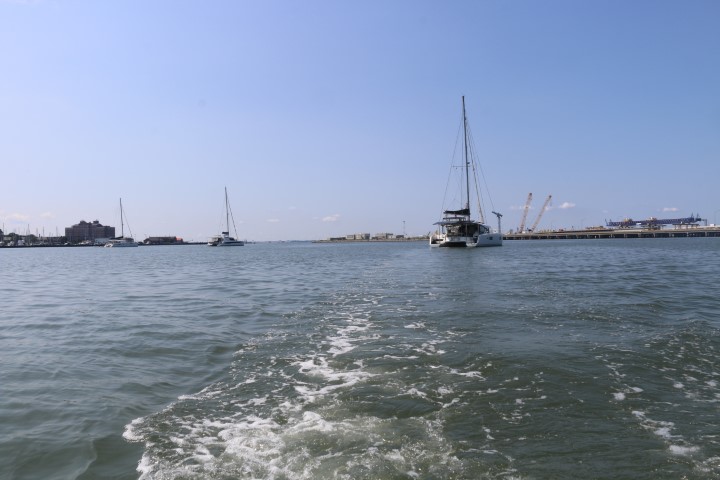 Leider bin ich zu feige – ich nenne es natürlich vorsichtig – um mit dem Para in die engen letzten 4 Meilen in den East River einzubiegen. So geht der Para schon gegen 17 Uhr wieder runter. Und unter Motor geht es dann Richtung „Zimmerman Marine“. Diese Werft – Marina wurde mir von Karen & Steve empfohlen. Hier bekommen sie auch Katamarane an Land. Und wären preisgünstig. Will ich mir mal vor Ort anschauen.