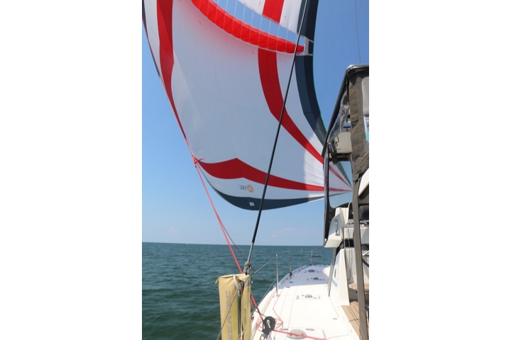 Gegen 14 Uhr ist es dann so weit. Ich habe recht gut Ost gemacht und der Wind aus Südost springt wie vorhergesagt an. Bei 6 kn Windgeschwindigkeit beginne ich, den ParaSailor zu setzen. Bis er ordentlich steht, habe ich über 10 kn. Prima – Motor aus! Ruhe! Und leises Rauschen im Wasser. Noch lärmt unten der Watermaker. Dann geht die Windgeschwindigkeit rauf bis über 17 kn – das bringt über 6 kn Fahrt! Toll!