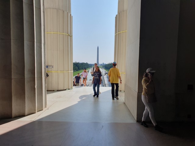 Um 6 Uhr – nach 4 Stunden Schlaf – ist Michèle wach. Und reißt mich mit hoch. Nun gut – für sie ist es ja noch europäische 12 Uhr. Aber sie steckt auch voller Tatendrang. Nix Jet-Lag. Eine Runde Washington mit 10 Kilometer will sie haben. So machen wir uns dann schon vor 9 Uhr auf den Weg. Die Wharf runter, am Monument lang zum Lincoln Memorial. Einmal rum und dann einen Zwischenstopp am Vietnam-Memorial. ChatGPT verrät uns dann auf mehrfache Nachfrage, wie die Namen sortiert sind. Jeder Gefallene ist ohne Rang und Einheit als Person nach Todesdatum aufgeführt. Aber: Das beginnt mit 1959 in der Mitte! Geht dann nach rechts und dann von links wieder in die Mitte, wo es 1975 endet. Wieder was dazu gelernt.