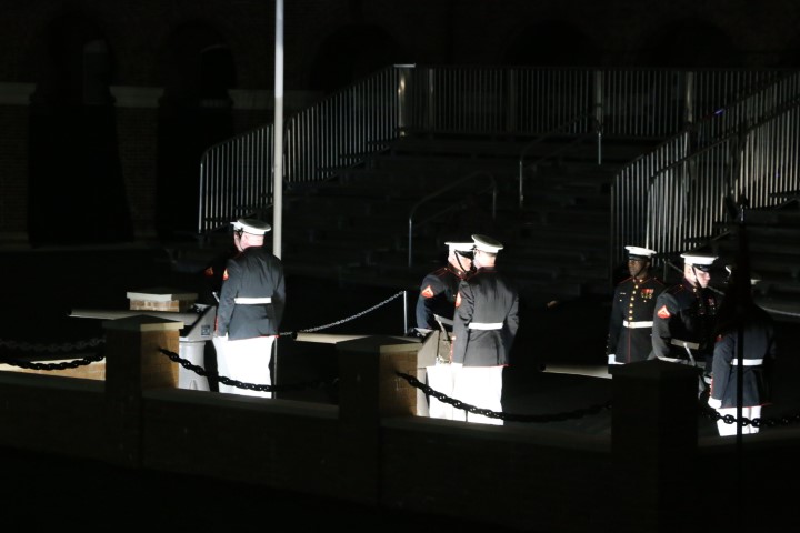 Der „Präsidenten“-Spielmannszug beginnt, der „Kommandeurs“-Spielmannszug setzt dagegen. Dann marschieren die Präsentations-Züge ein. Zeigen Ihr Zeremoniell, das auch bei Staatsbesuchen geboten wird. Dann eine mehr als 10 Minuten lange Show des „Silient“-Platoons. Schon beeindruckend, diese ganzen Marschier-Formationen in absoluter Stille.