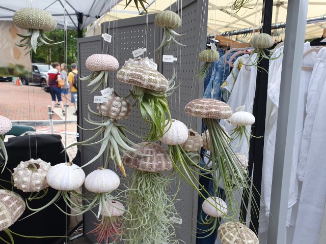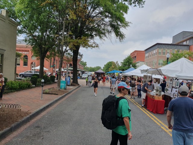Morgen-Programm: Eastern Market. VITAMIN fährt vor, wir folgen dann nach einem ruhigen Angehen des Tages. Natürlich zu Fuß. Michèle will das Nützliche mit dem Notwendigen verbinden: 10.000 Schritt müssen es schon sein, pro Tag! Der Markt selbst eine bunte Mischung aus Kunst, Klamotten und in der Halle Lebensmittel. Vor der Halle sitzen die VITAMINler. Die trennen sich gerade und wir „Erwachsenen“ gehen erst mal zum Kurzeinkauf zu Traders Joe. Ein Ableger von Aldi, der hier eher in Bio-Richtung geht. Nur: Leinsamen-Öl finden wir nicht. Und Roggen oder Weizen-Körner auch nicht.
