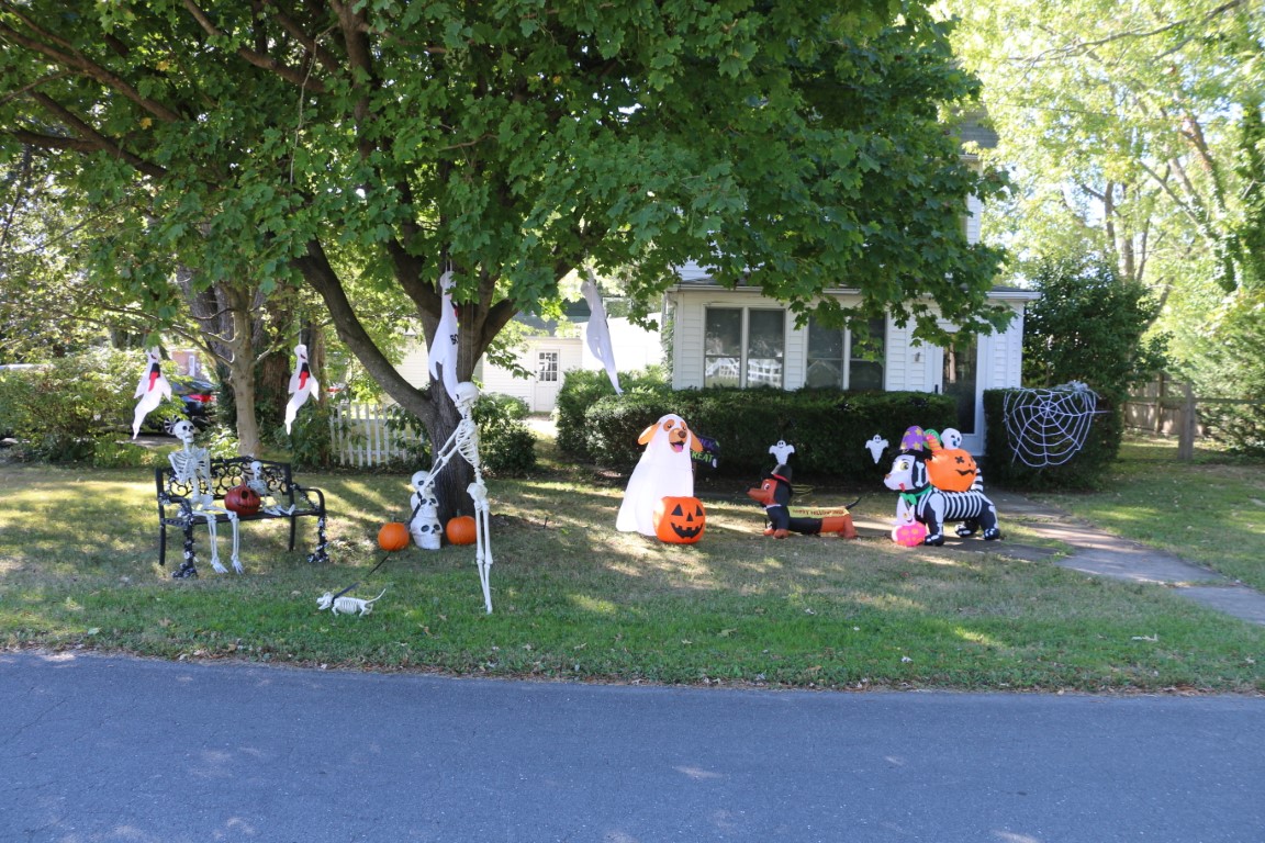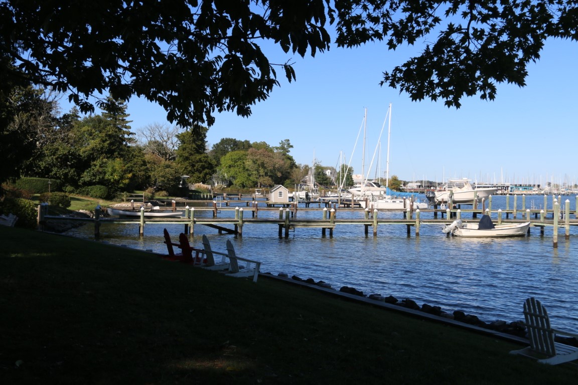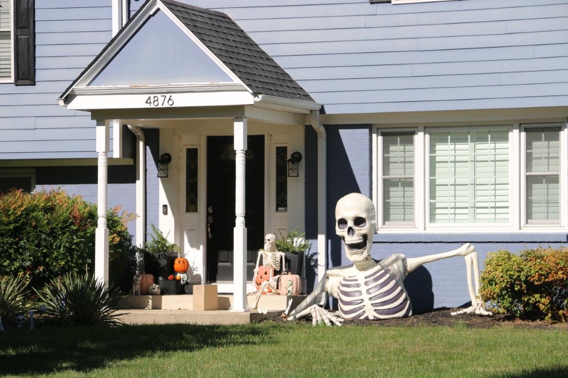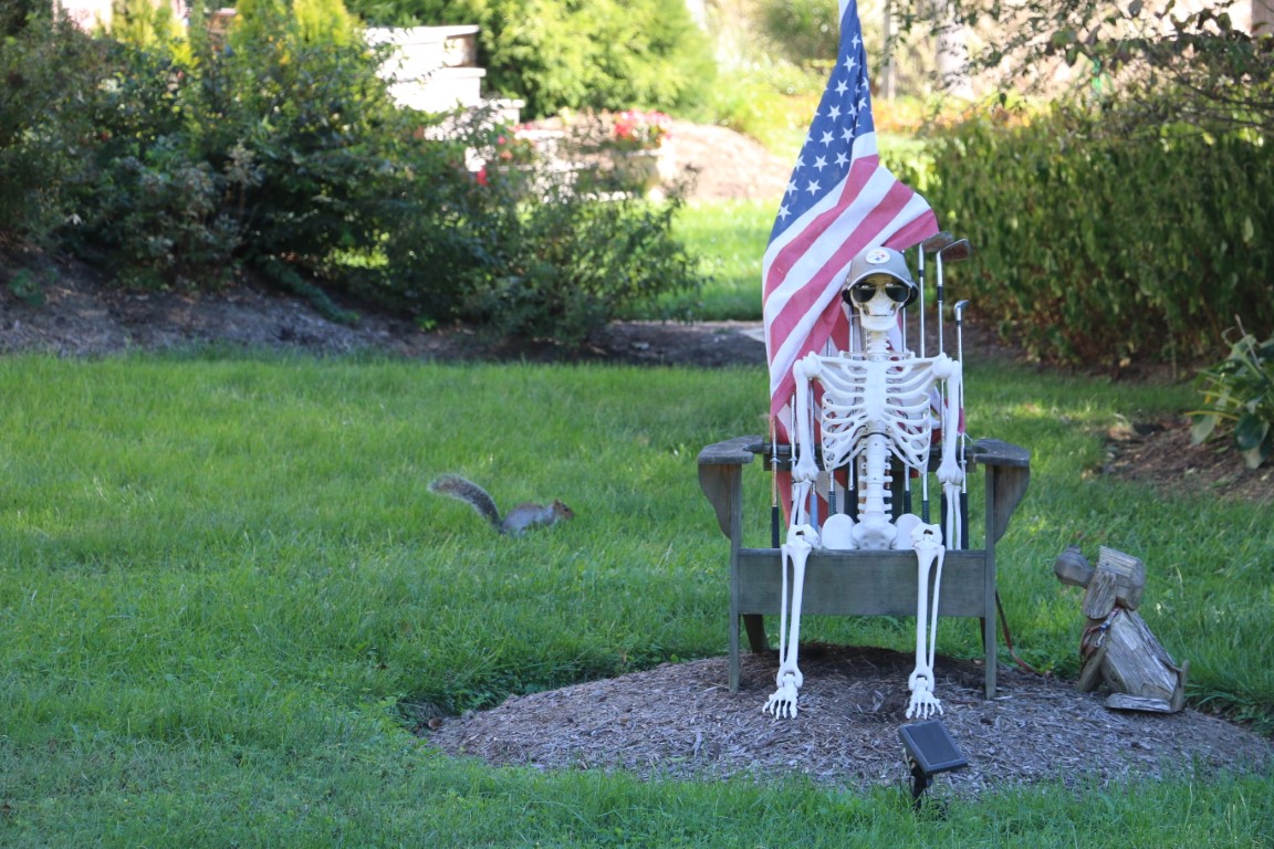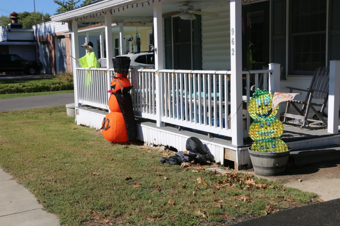 Mit dem Dinghy brauchen wir für die Meile bis zur (ersten!) Marina bald 20 Minuten. Da erst mal: Nett. Aber nichts Besonderes. Also laufen wir mal los. Bemerkenswert, dass Halloween hier eine ganz andere Dimension hat. Fast jedes Haus hat irgendetwas vor der Tür. Skelette sind wohl ein Muss. Mindestens aber Kürbisse. Die witzigsten Ideen werden fotografiert – endlich denken wir mal daran!