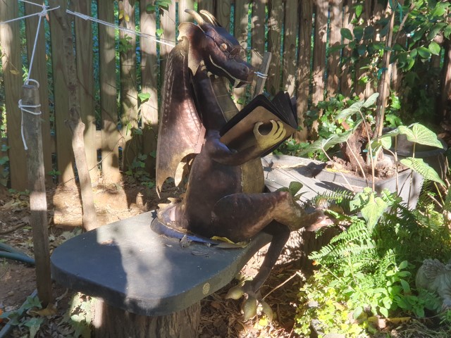 An einem dicken Kürbis sind wir schon mehrfach vorbei gegangen. Heute entdecken wir, dass der echt ist – kein Plastik! Ok – dann müssen noch Fotos gemacht werden! Mit dem kleinen Finger entnehme ich eine „Probe“. Ja – echter Kürbis!