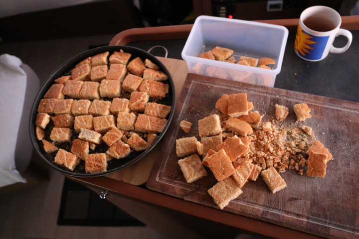 Dann sicher noch „Kleinigkeiten“. Die Bilder von den Oma Ruru Rusks kann ich nachliefern. Leider schmecken sie nicht richtig. Das Mais-Gries-Mehl, das ich als Grundlage genommen haben, ist „selfrising“ und salzig. Und ich habe keine Buttermilch verwendet. Alles zusammen: So nicht wieder!
