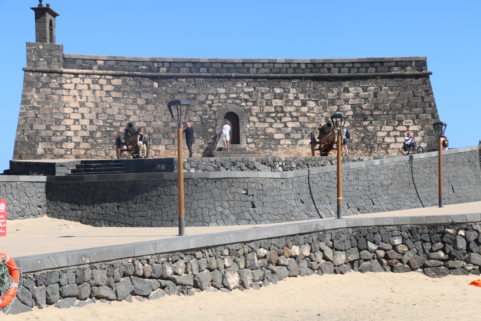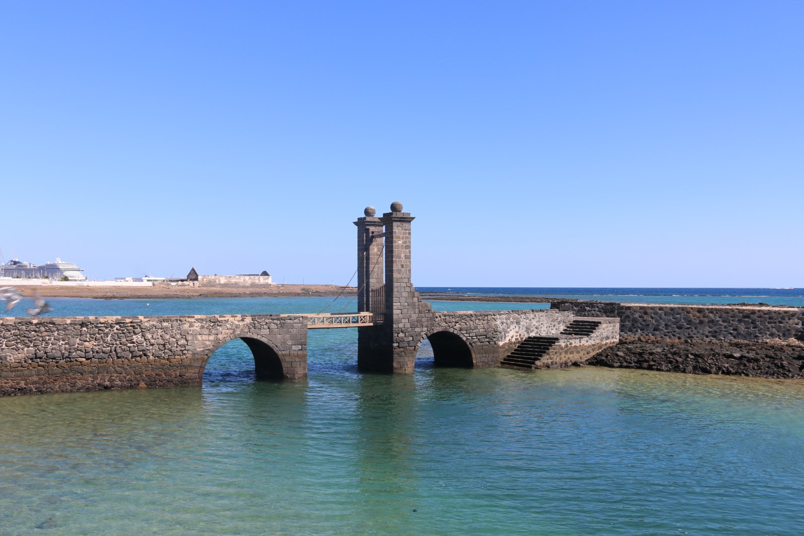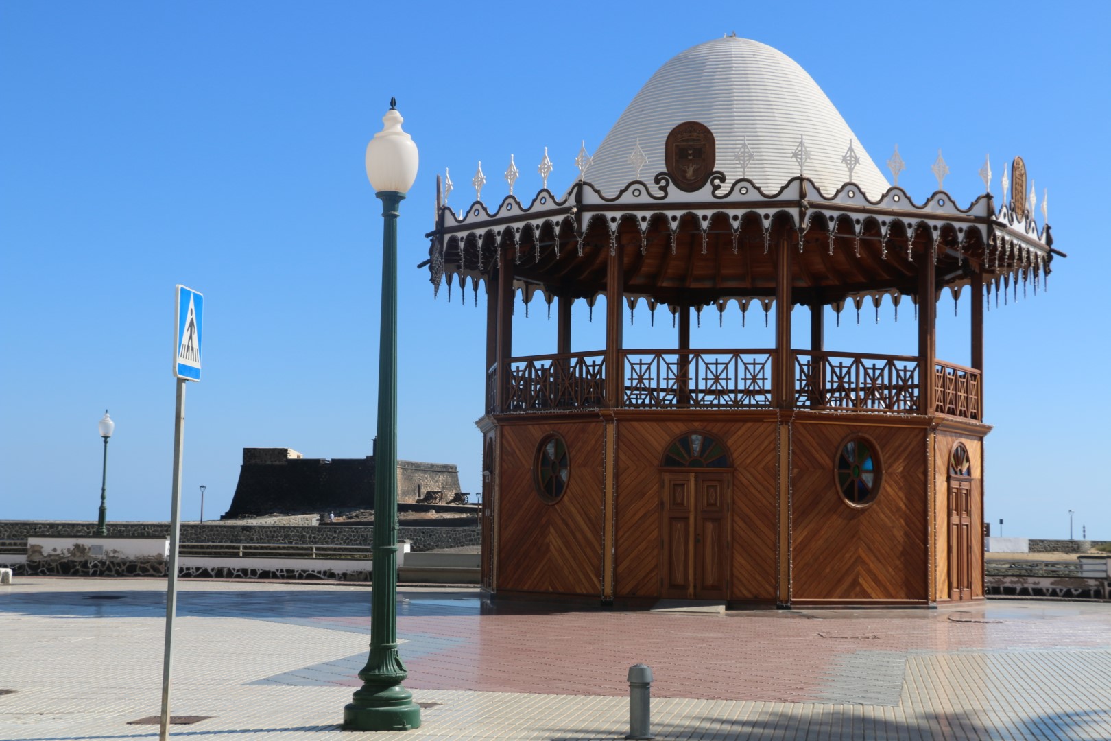 In Arrecife fällt mir gleich die weihnachtliche Straßendekoration auf, was für uns bei diesen Temperaturen einfach sehr ungewöhnlich ist. Ansonsten besichtigen wir die Lagune, Charco de San Ginés, die mit dem Meer verbunden ist. Dort schaukeln kleine, farbige Fischerboote in der Nachmittagssonnne und die Lagune ist mit kubischen Häusern in den Farben weiß und blau umrundet. Idyllisch. Danach besichtigen wir das Castillo de San Gabriel. „Diese Festung diente über Jahrhunderte als Bollwerk gegen die Angriffe der Piraten.“ Weiter zum neuen Hafen, in der Hoffnung dort einen Laden mit Yachtzubehör zu finden. Samstagnachmittags ist der allerdings geschlossen! Pech gehabt.