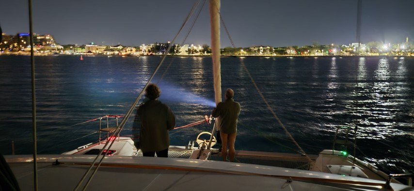 Um 01 Uhr übernehme ich die Wache – es sind nur noch wenige Stunden bis Nassau. Da soll Michèle noch ein wenig Schlaf bekommen, denn das Einlaufen, das muss sie schon bewachen.