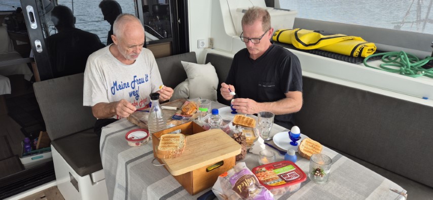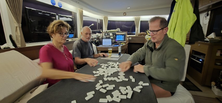 Anker werfen, ein wenig seeklar zurück und alle dürfen noch mal in die Koje! Als Ruhe einkehrt bekomme ich ob der späten Stunden marinemäßig ein Einlaufbier. Wir spielen schnell eine Runde „Mexican Train“. Und dann schlafe selig bis nach 10 Uhr.