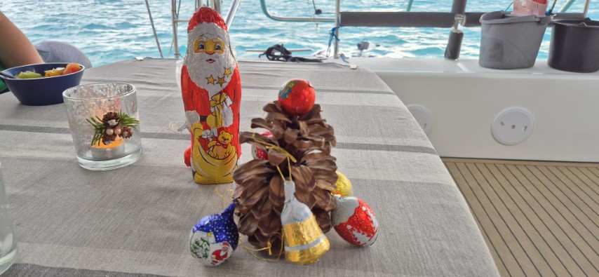 An Bord gibt es dann Bescherung und Weihnachtsessen. Wohl typisch in vielen Familien: Würstchen an Kartoffelsalat.