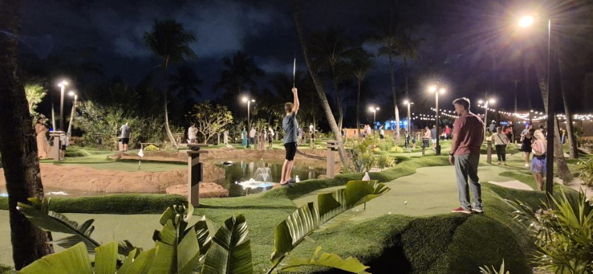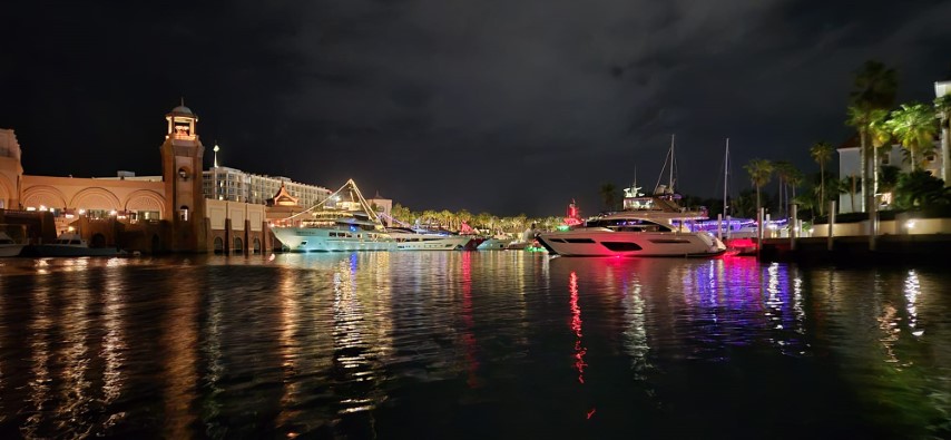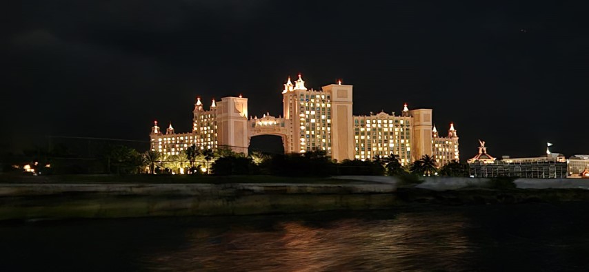 An Bord gibt es einen weihnachtlichen Obstsalat. Dann geht es bald darauf ins Atlantis zur „Parade“. Wir fahren so früh, dass wir noch durchs Kasino und ein wenig durch das Aquarium spazieren können. Dann kommt die „große“ Parade! Melanie ist begeistert. Filmt und fotografiert wie eine Wilde.