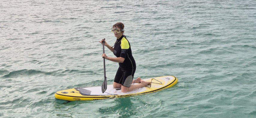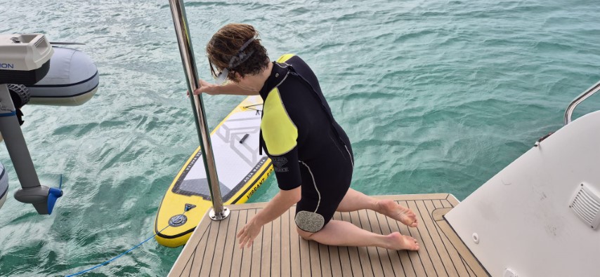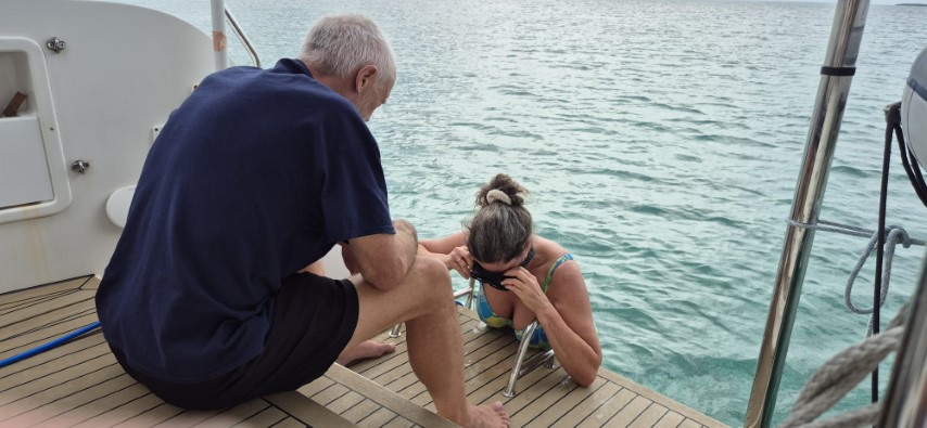 Der erste Versuch mit Schnorchel und Taucherbrille in der ersten Bucht schlug in sofern fehl, dass sie für ihr Gefühl nicht genug Luft durch den Schnorchel bekommt.