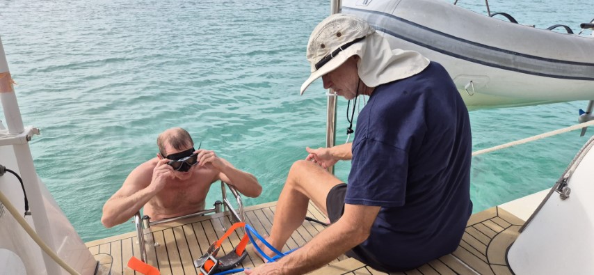 Nachdem der Tag etwas bedeckt begonnen und wir gemeinsam gefrühstückt hatten, war mein Plan mit Taucherbrille und Schnorchel ins Wasser zu gehen.