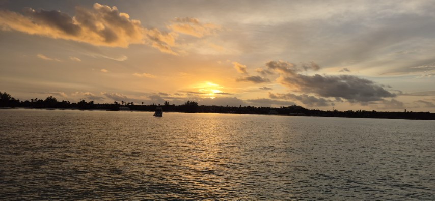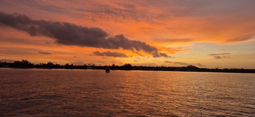 Einer der Gründe, warum wir heute Abend nicht bis 24.00 Uhr aufgeblieben sind, war, dass wir am nächsten Tag gegen 07.00 Uhr (06.30 Uhr aufstehen) mit den Dinghy (Beiboot) einkaufen fahren und danach dann zu den Exumas ablegen.