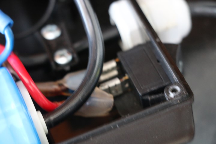 Doch anscheinend arbeitet das Gerät einwandfrei. Dann bleibt nur die Elektrik des Kompressors selbst. Das hatte ich ja befürchtet…. Ich schraube den Deckel ab. Sieht sehr sauber verarbeitet aus. Beim Durchmessen kann ich es nicht glauben: Der Ein-/Ausschaltet schaltet nur einen Pol! Der zweite bleibt „off“. Also – ein Schalter der mitten im Betrieb durchbrennt?? Das gibt es doch nicht! Als Gegenprobe schließe ich den 2. Pol kurz. Und kann mit dem Schalter nun den Kompressor anschalten! Whow! Das war einfach!