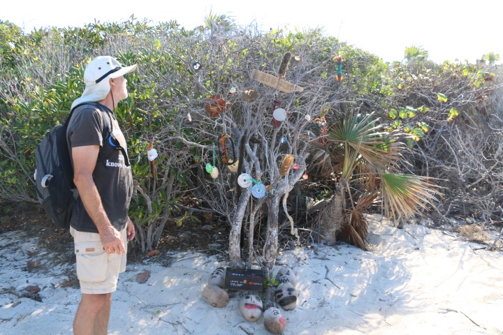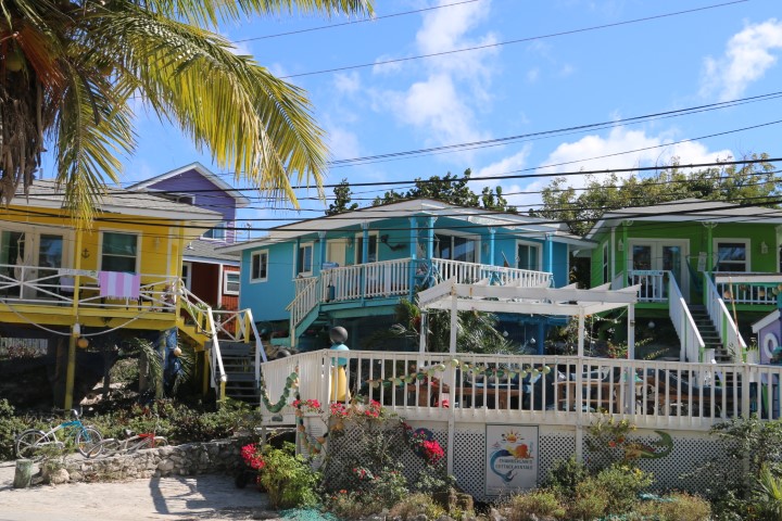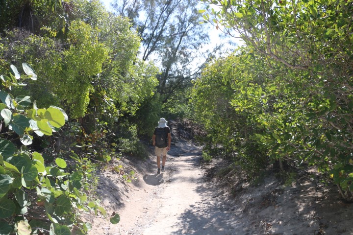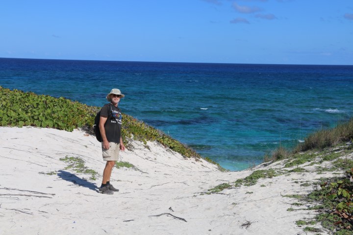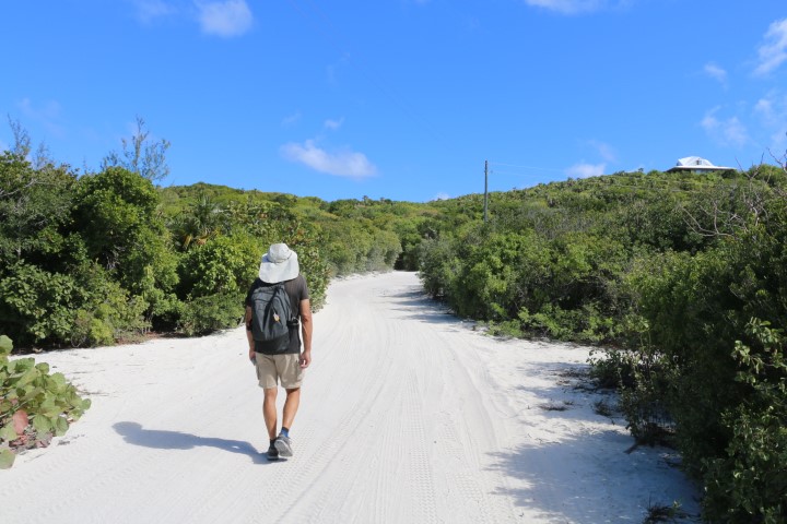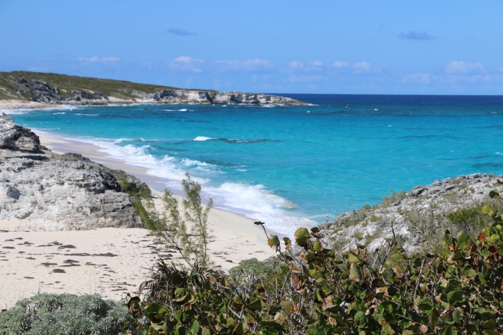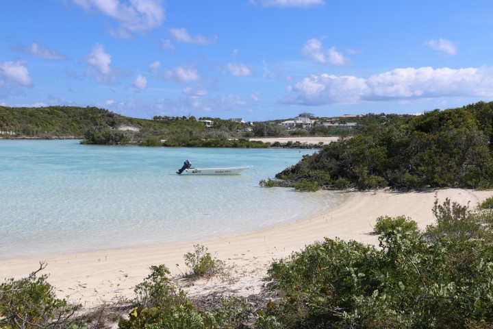 Doch zunächst geht es Richtung Norden. Vor der Müllkippe rechts ab und dann immer nach Süden. Auf der Atlantik-Seite der Lagune. Und da wohnen die Schönen und Reichen! Was uns hier auf Staniel Cay gestern schon gefallen hat: So gut wie kein Dreck am Straßenrand, das setzt sich heute hier fort. Aber auch die Häuser entwickeln sich zu gepflegten Villen und prachtvollen Anwesen. Nein – die Hilfsarbeiter wohnen hier sicher nicht… Am Ende wieder der gleiche Erfolg wie gestern: Das Süd-Kap ist in privater Hand. Ein Schild verkündet nicht nur „Private Property“, sondern fügt noch an: „Don’t even think of driving beyond this point!“. Ich bin ja dafür weiter zu gehen. Wir driven ja nicht! Aber Michèle setzt sich durch: Umdrehen. Wir nehmen dann noch einen Weg, der bis an die Beach führt. Und machen dann bei der Müllkippe einen Schwenk nach Norden und nehmen die nächste Möglichkeit, ein zweites Mal an die Küste vor zu stoßen.