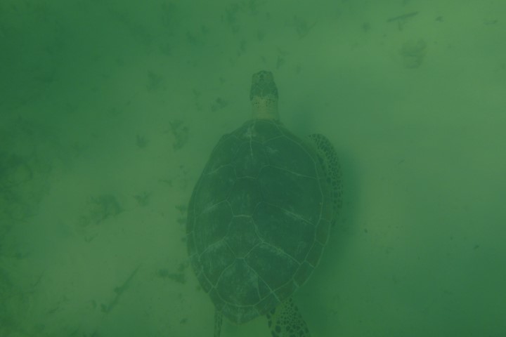 Und wie erwartet treffen wir auf eine Menge Schildkröten von der 30-cm-Klasse bis hoch zur 80-cm-Klasse. Die Fotos zeigen, dass das Wasser eher trübe ist. Ostseemäßig mit Sicht zwischen 3 und 5 Meter. Doch wider Erwarten sind einige Filmaufnahmen verwertbar!