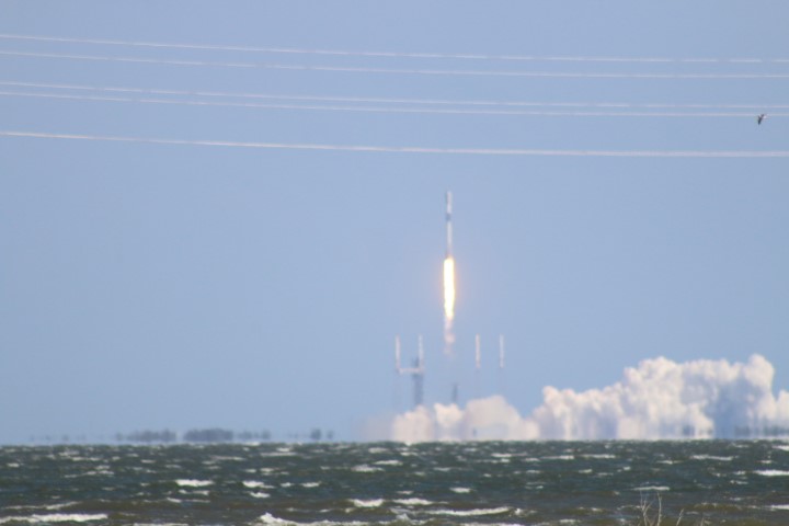 Wir bewaffnen uns mit Ferngläsern und Fotoapparat mit Super-Tele. Dann wird der Laptop rausgestellt und mit dem einen Auge schauen wir auf den Stream, mit dem anderen auf die Startrampe direkt. 5 Minuten vor dem Start schaltet auch Space-X ihren Stream on. Da bekommt man auch Bilder direkt aus der Rakete!