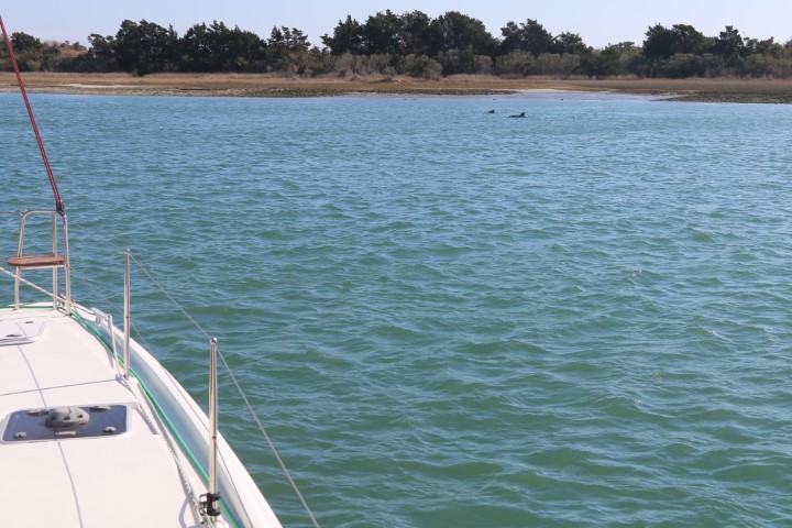 Nachdem wir „drin“ sind wird es noch spannender. Der Weg nach Beaufort ist nur aufgrund der Tonnen zu erkennen. Ich meine, wir fahren direkt auf den Strand zu. Aber es passt. Eine langgezogene Rechtskurve, scharf links, dann wieder rechts rum und wir sind im Zielgebiet.