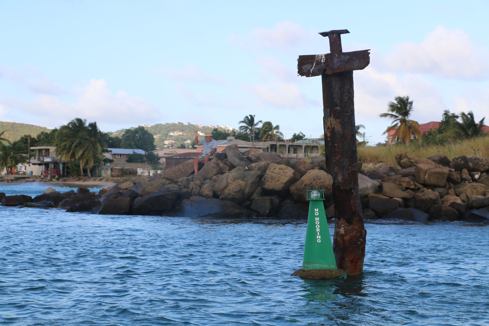 Im Hafen nutzt Michèle dann unser Horn, um lautstark auf die Ankunft aufmerksam zu machen. Was ich mir vorher so nicht vorstellen konnte: Sie hat einen Mordsspaß daran. Brav fallen die anderen Schiffe im Hafen ein, die Crews kommen an Deck und applaudieren. Ein schöner Empfang. Wir müssen fast um alles rum, da ihr Liegeplatz von hinten zu erreichen ist. Und dann am Platz: Eine richtig kleine Menschenmenge nimmt die Cloud Jumper in Empfang. Das letzte Schiff, das noch richtig begrüßt wird. Ganz hinten trottet noch die Olimir, die aber mit Maschinenproblemen inzwischen in Kapverden eine weitere Zwischenstation macht. Also – irgendwie kann man die nicht mehr mitzählen, denn es ist ungewiss, wann die sich auf den langen Weg macht und ob sie dann noch nach St. Lucia läuft.