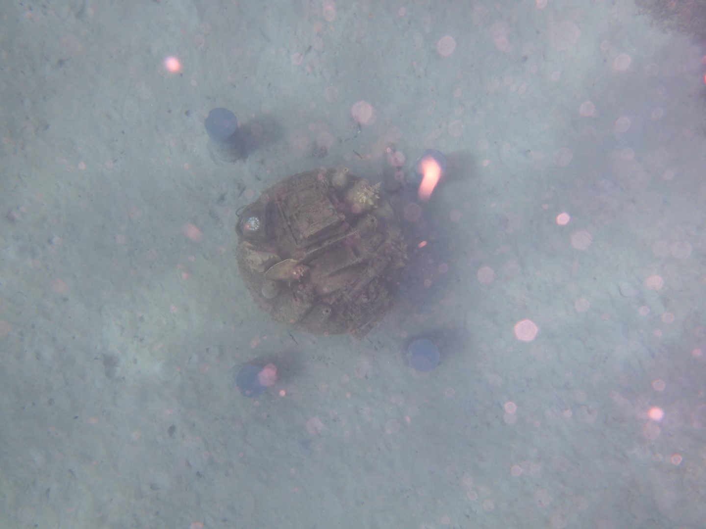 Doch heute war die Unterwassersicht wieder prima. Vielleicht so gut wie noch nie. Und dann entdeckt man Sachen! Ok - ist ein Gimmick für die tauchenden Touris. Aber hat doch Spaß gemacht. Wie aus dem "Oooops" ein "Ah" wurde habe ich versucht in der Bilder-Reihe darzustellen.