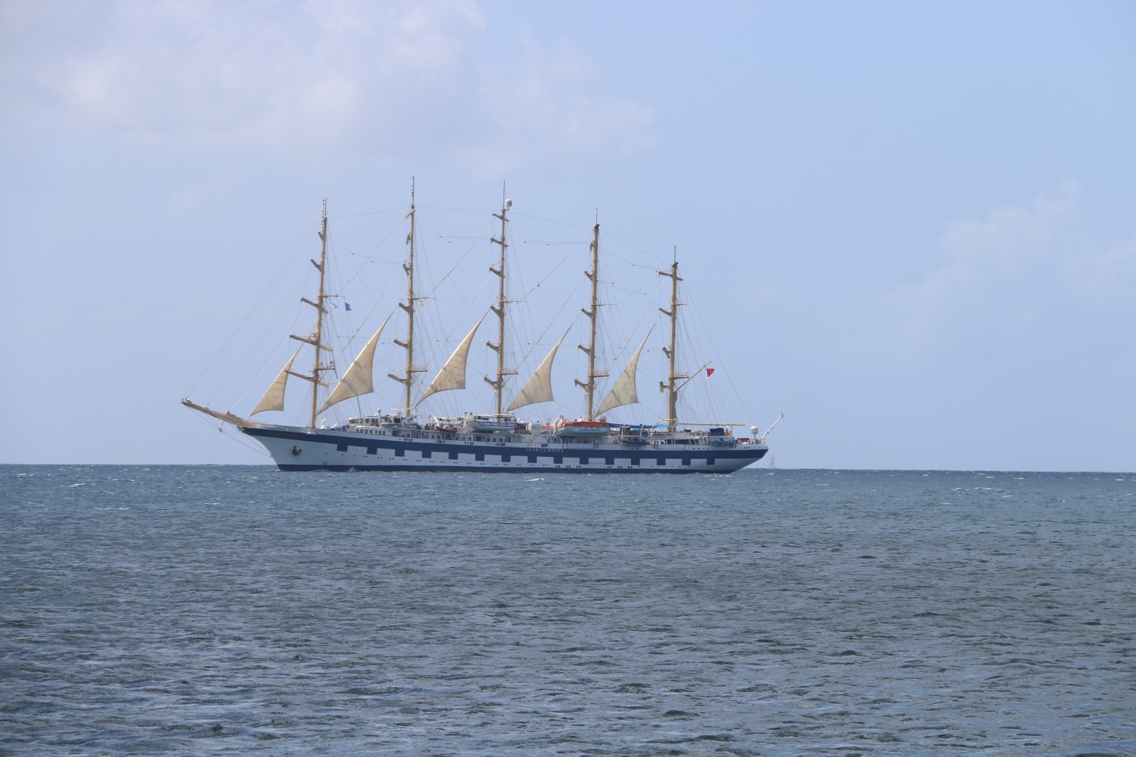 "Der hat noch ein paar mehr Segel gehisst bevor er komplett um die Ecke war. Ja, Kreuzfahrer. Super nobel innen und auch nicht ganz so viele Leute wie sonst. Daaaas könnte ich mir noch vorstellen. Kein Anlegen, kein Ankern, alles wird gemacht und ich kann mir das Ganze mit einem Cocktail in der Hand ganz entspannt anschauen. Das machen wir, wenn wir dieses Schiffchen verkauft haben!"