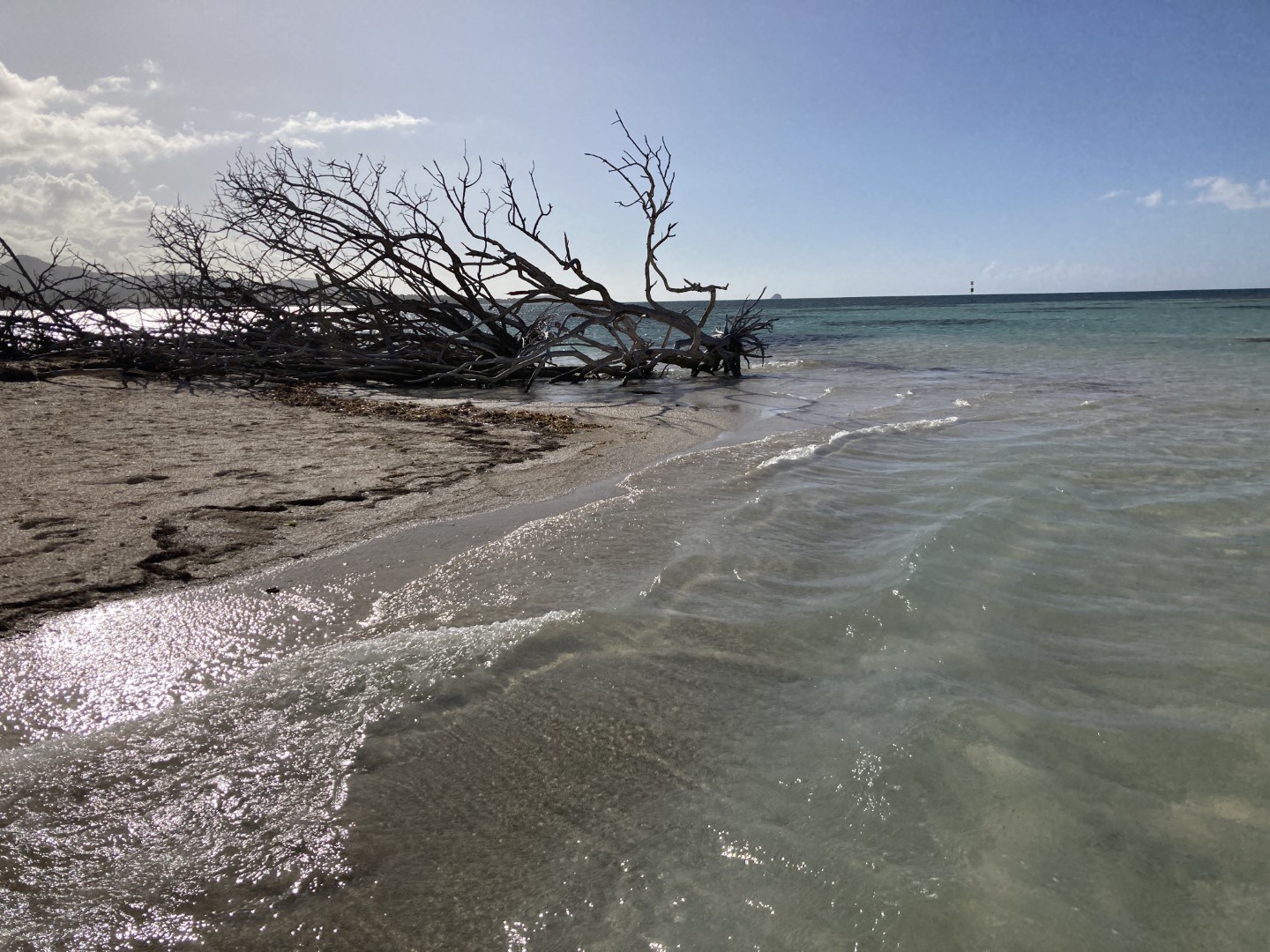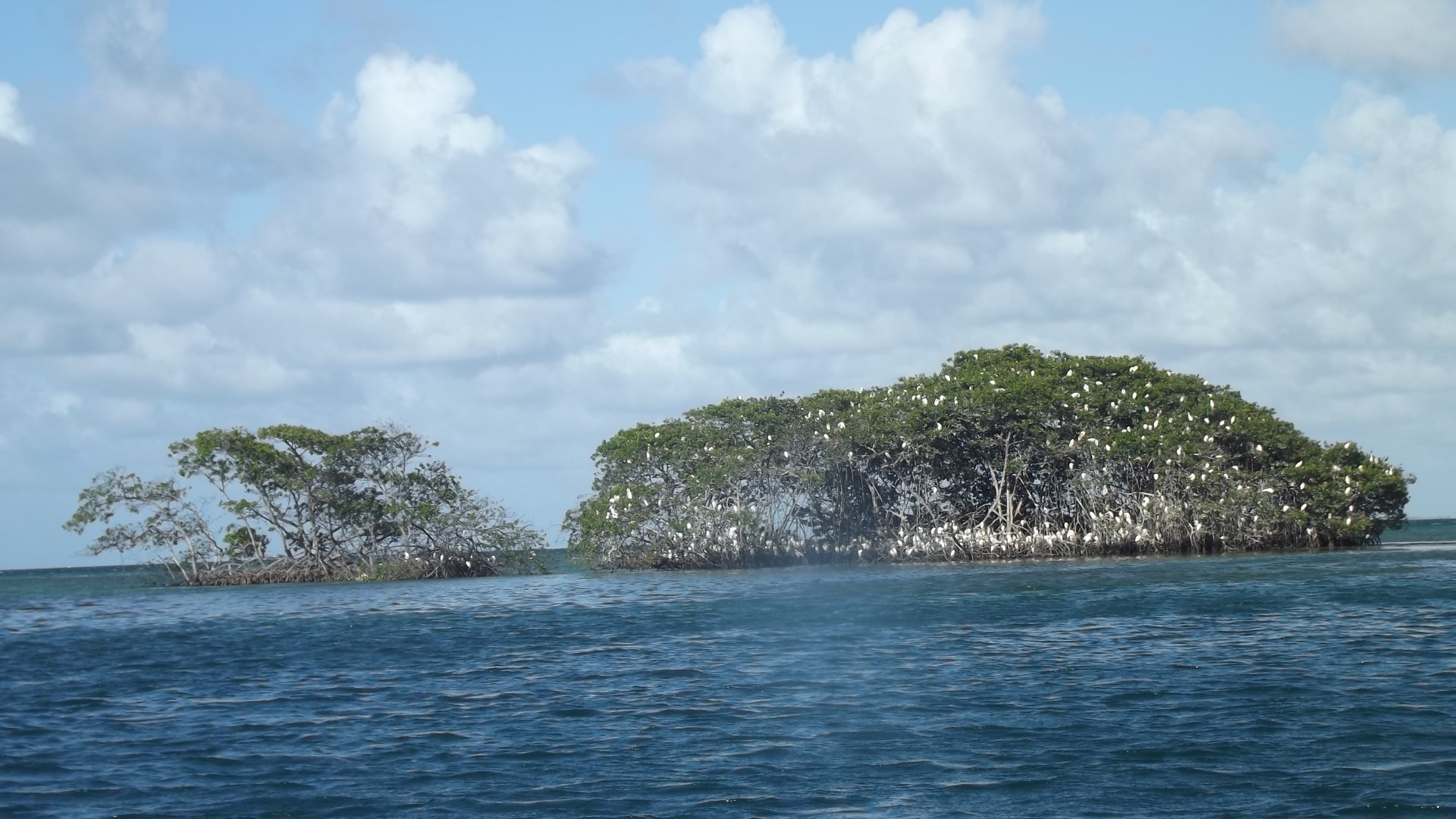 Danach geht es weiter zu einer vor ein paar Jahren von einem Hurrikan aufgewirbelten Insel (der Sand besteht aus kalzifizierten Algen.) Sehr karibisches Flair. Diese Insel wird frei von Sträuchern und Mangroven gehalten, da hier Bodenbrüter hinkommen. In der Zeit ist es natürlich verboten die Insel zu betreten.