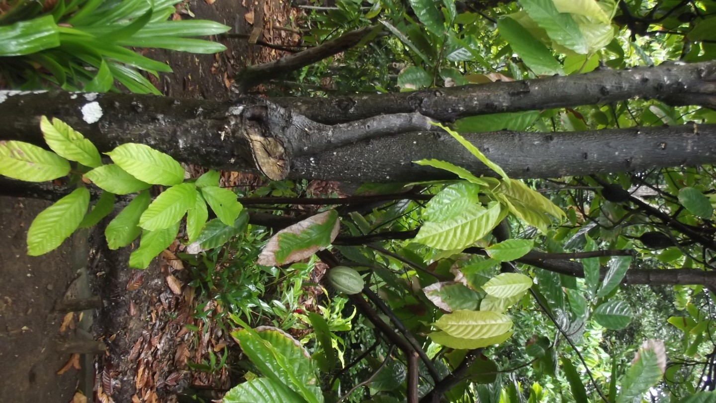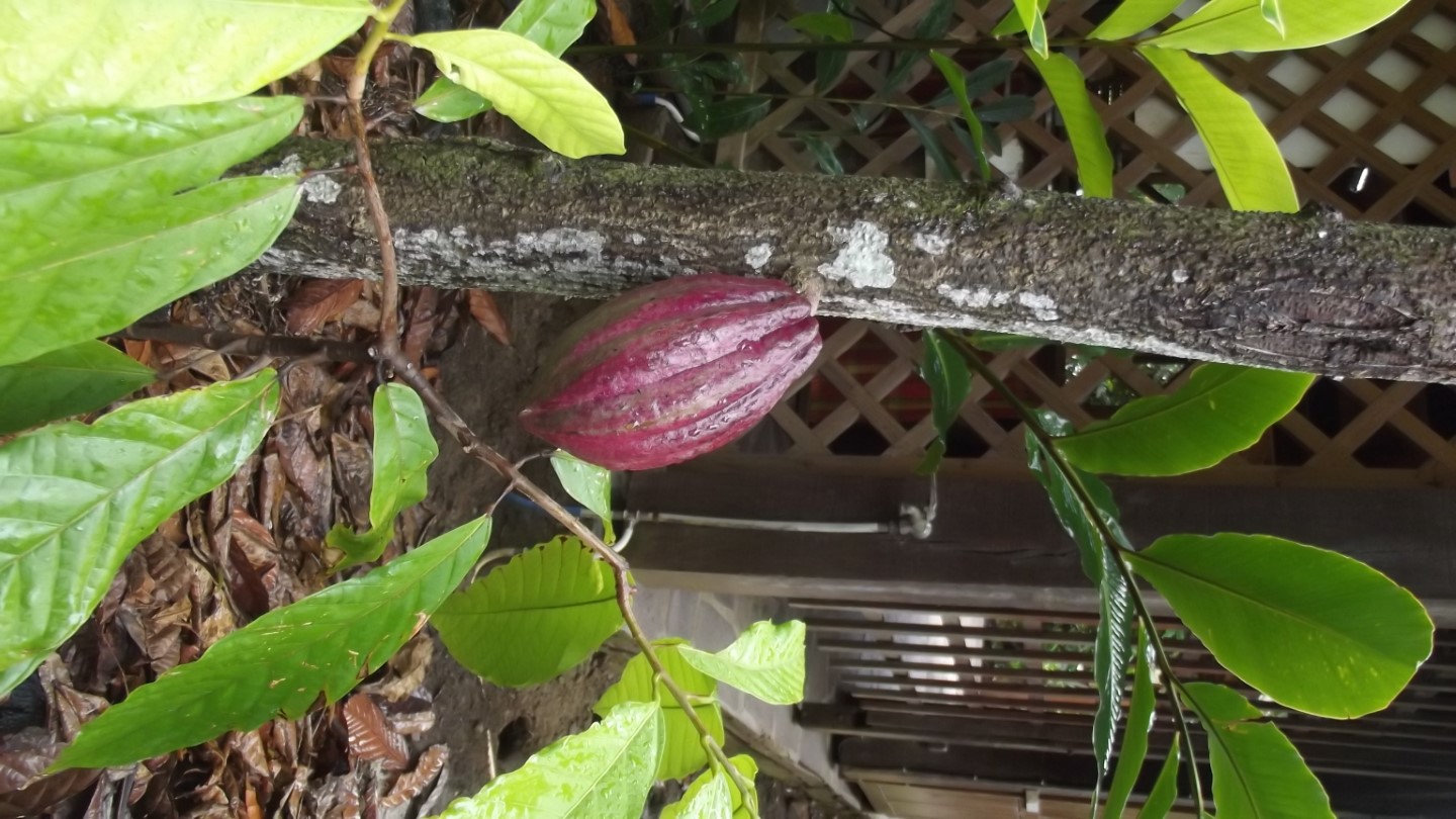 Nach der Mittagspause (der Museums!) sind wir bei dem Ersten. Und kommen auch ohne Reservierung rein. Der Durchgang durch den recht kleinen Garten mit guten Erklärungen wird durch den Regen beschleunigt. Dann gibt es eine große Erklärung. Sie ist nicht zu übersehen und redet in Französisch und einer Geschwindigkeit, in der Michèle kaum mitkommt. Von Übersetzen kann gar nicht die Rede sein. Wir Germanen – also Yoshi und ich – können nur die Zeichen verstehen. Und die Proben. Kakaobohne natur, Fruchtfleisch. Raspel und dann gemahlen, schließlich den fertig fermentierten Kakao. Und die verschiedenen Schoko-Sorten, die dann zum Verkosten angeboten werden. Ich glaube, Angela (meine Schoko-Kollegin!) – hier hättest Du auch Deinen Spaß gehabt. Selbst an der 100% Masse!