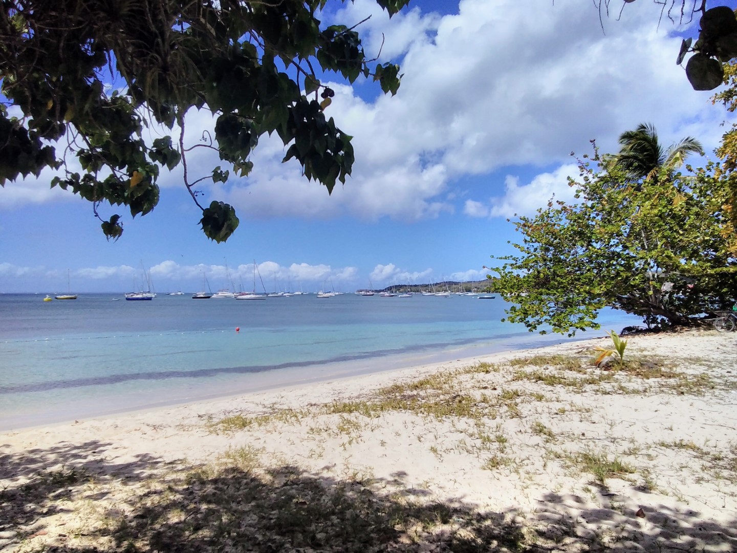 Es zweigen immer wieder kleine Wege zum Strand ab. Ein Strand wie aus dem Bilderbuch, so wie man sich einen Karibikstrand vorstellt. Weißer Strand, azurblaues Wasser und kaum Gäste. Zugegeben, der Strand ist nicht sehr breit, dafür aber kilometerlang! Es ist ein wirklich schöner Spaziergang, an dessen Ende wir uns leider von Andrea und Andreas verabschieden müssen. Beide wollen in den Süden der Karibik und dort die Hurrikan-Saison verbringen. Das haben wir schon von mehreren Seglern gehört, dass man dort vor den Hurrikan sehr sicher sei.