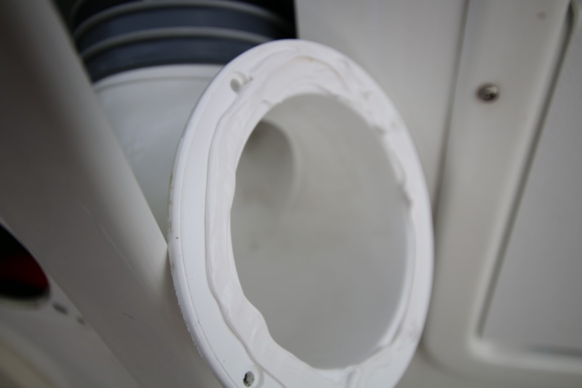 Den Rest des Tages verbringen wir langsam. Die Homepage bekommt noch Berichte und Bilder. Und ich baue zwei Klampen achtern an beiden Seiten an. Das ist, da erst mal ein Zugang geschaffen und am Ende auch wieder verschlossen werden muss, keine Sache von wenigen Minuten….
