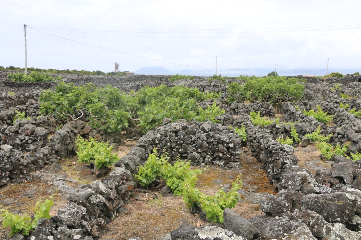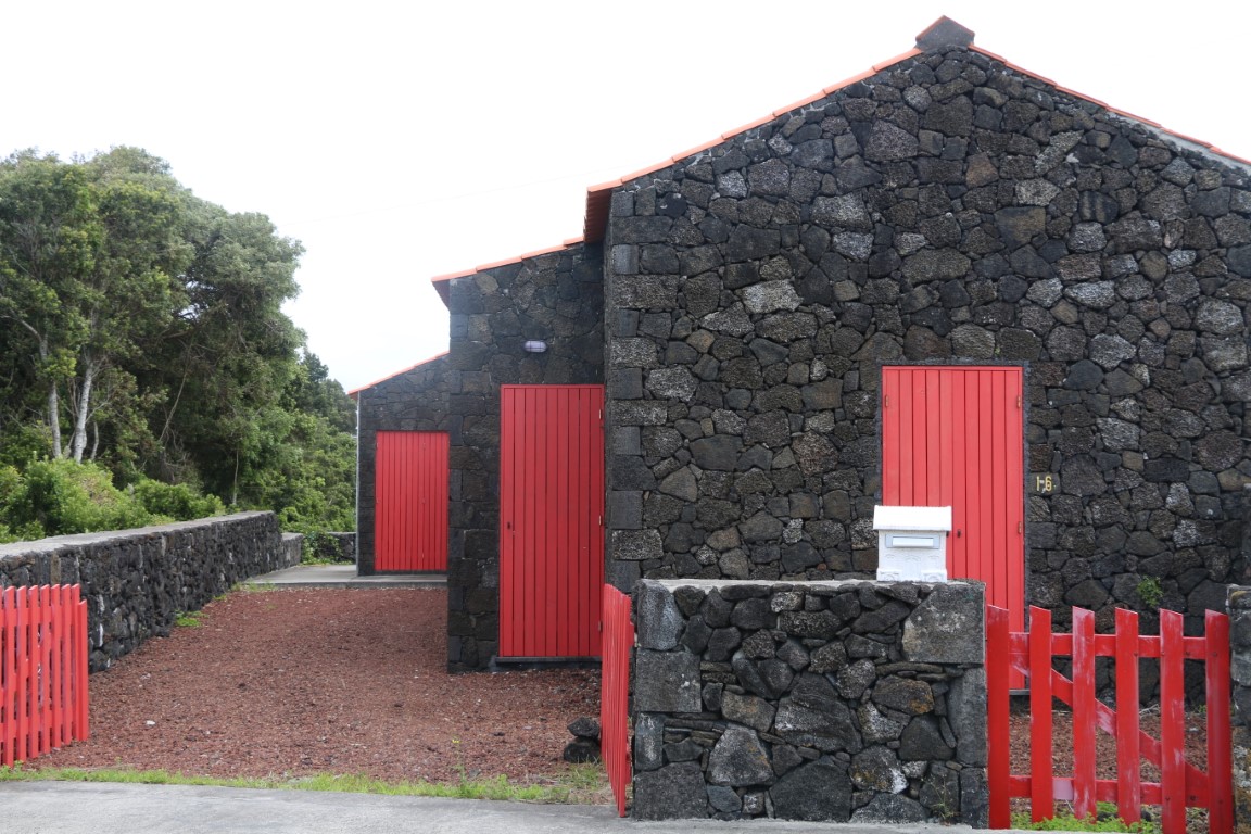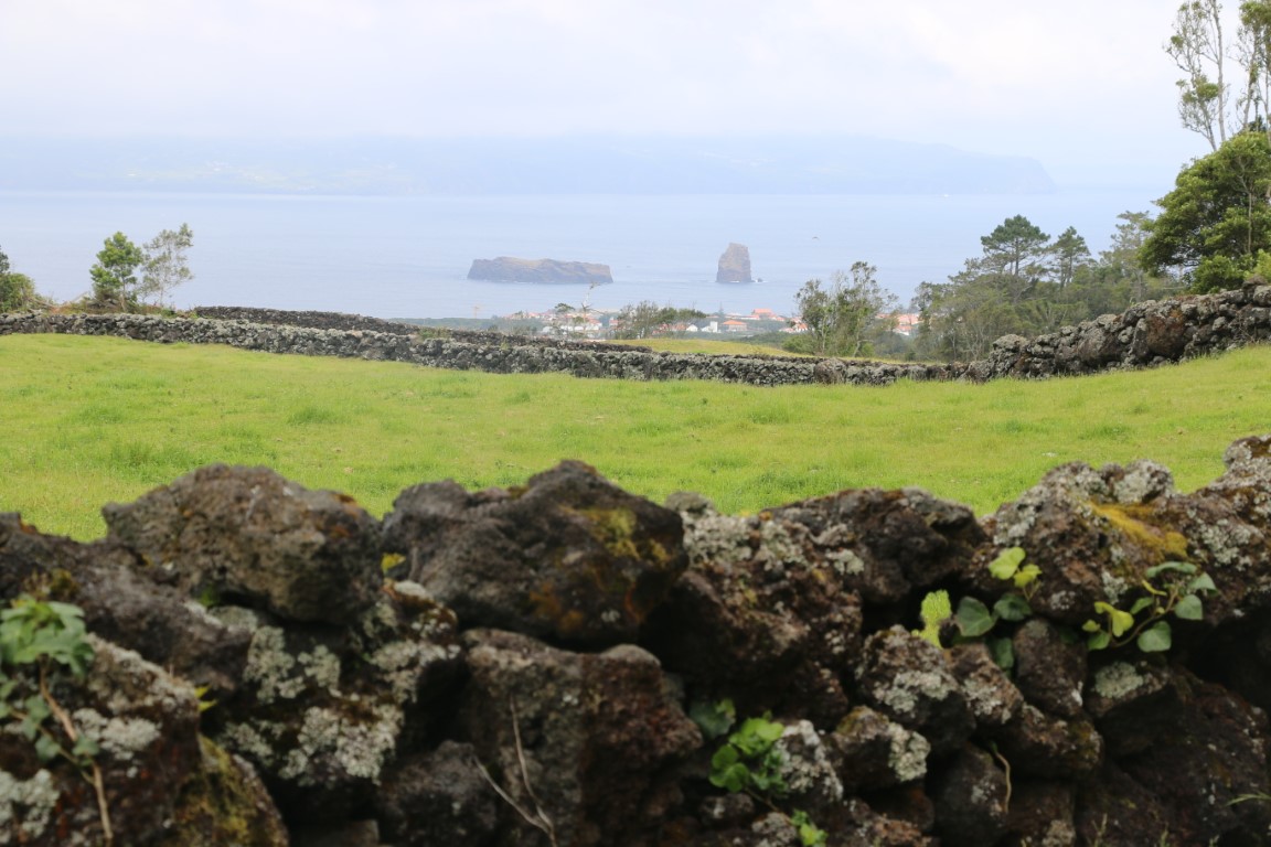 Der Himmel ist bedeckt und es sieht eher nach Regen als nach Sonne aus. Außer einem kurzen Nieselregen bleiben wir heute aber verschont und manchmal kommt sogar kurz die Sonne hervor. Zum Wandern also ideales Wetter. Der Weg zur Höhle ist kurzweilig und da abseits der Hauptverkehrswege auch sehr ruhig. Die Landschaft hier auf Pico ist anders als drüben auf Faial. Hauptunterschied sind die enormen Massen an schwarzem Tuffstein. Sie wurden sowohl als Baumaterial für Häuser und Stallungen benutzt als auch für Begrenzungen der Felder und Wiesen. Was dann noch über war, wurde stumpf zu Pyramiden gehäuft. Aber auch beim Weinanbau werden sie um die einzelnen Rebstöcke aufgeschichtet; als Wärmespeicher und Windschutz.