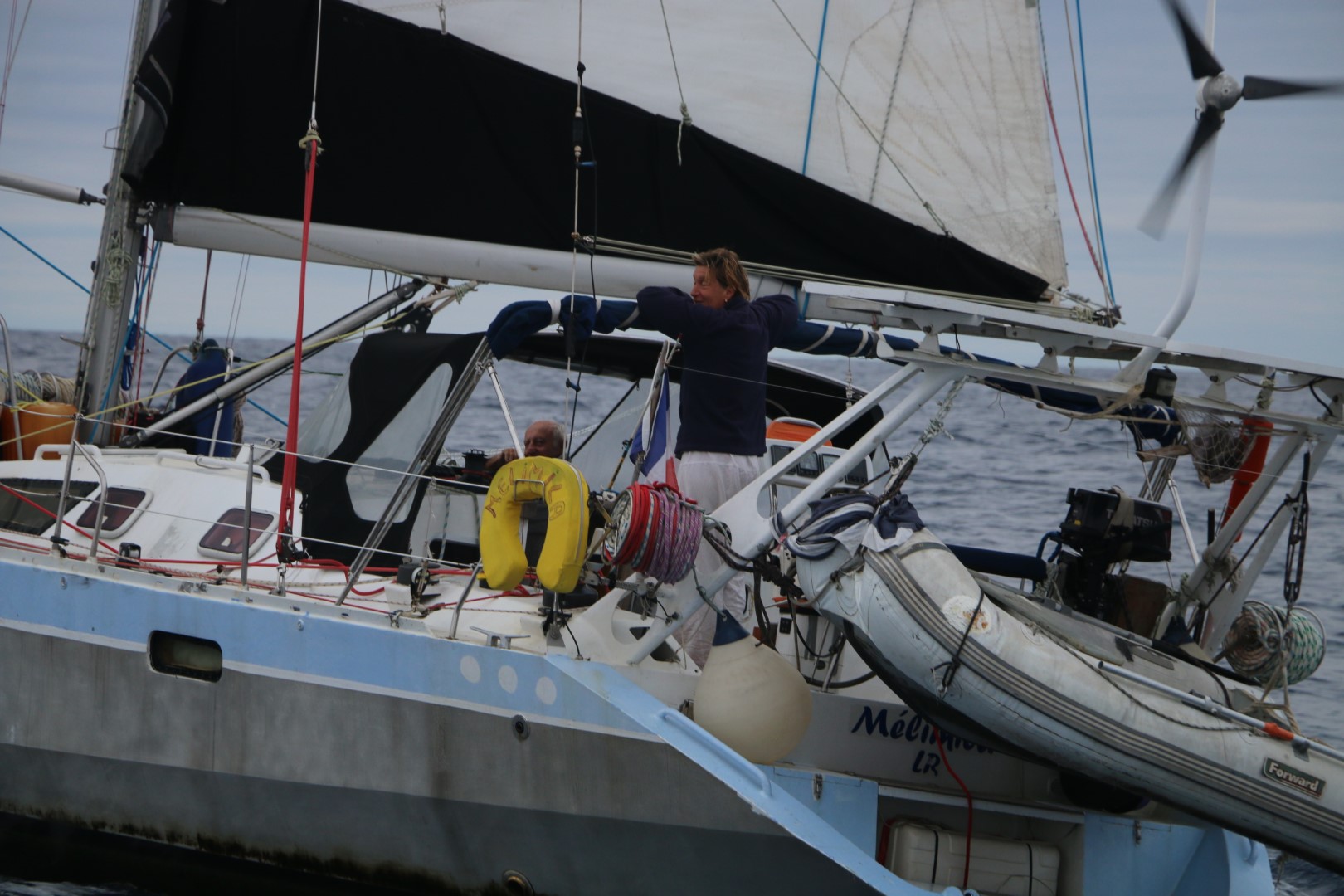 Der Rest der Fahrt – insbesondere der Schlussteil an Sao Miguel entlang – geht von Fast-Flaute bis sehr flotte Fahrt. Da können wir den WaterMaker noch mal laufen lassen, denke ich. Haben ja noch ein paar Stunden. Und prompt meldet Michèle: Eh – fast 7 Knoten! Zack , sind wir am Punkt, ab dem wir auf die letzten 2 Meilen zum Hafen eindrehen müssen. Den ParaSailor runter, die Fender und Festmacher raus und schon sind die 2 Meilen hinter uns. Schnell noch den WaterMaker spülen – das ist immer der letzte Punkt in der Bedienung: Salzwasser raus, alles mit dem quasi-destillierten Wasser gespült und gefüllt. WaterMaker aus und die Einfahrt beginnt. Natürlich antwortet die Marina auf UKW-Anruf nicht. Aber das sind wir ja inzwischen gewohnt und hier auch von anderen Seglern vorgewarnt. Also suchen wir uns ein Plätzchen. Findet sich auch gut. Rückwärts rein, beim Festmachen helfen 2 von einem kanadischen Katamaran sehr zur Freude von Michèle. Aber eigentlich waren wir schon fest, als die kamen. So bald wir nämlich die Backbord Leine achtern fest haben, kann ich mit den Motoren gegen jeden Wind den Zossen festhalten. Und alles andere geht dann in größter Ruhe.
