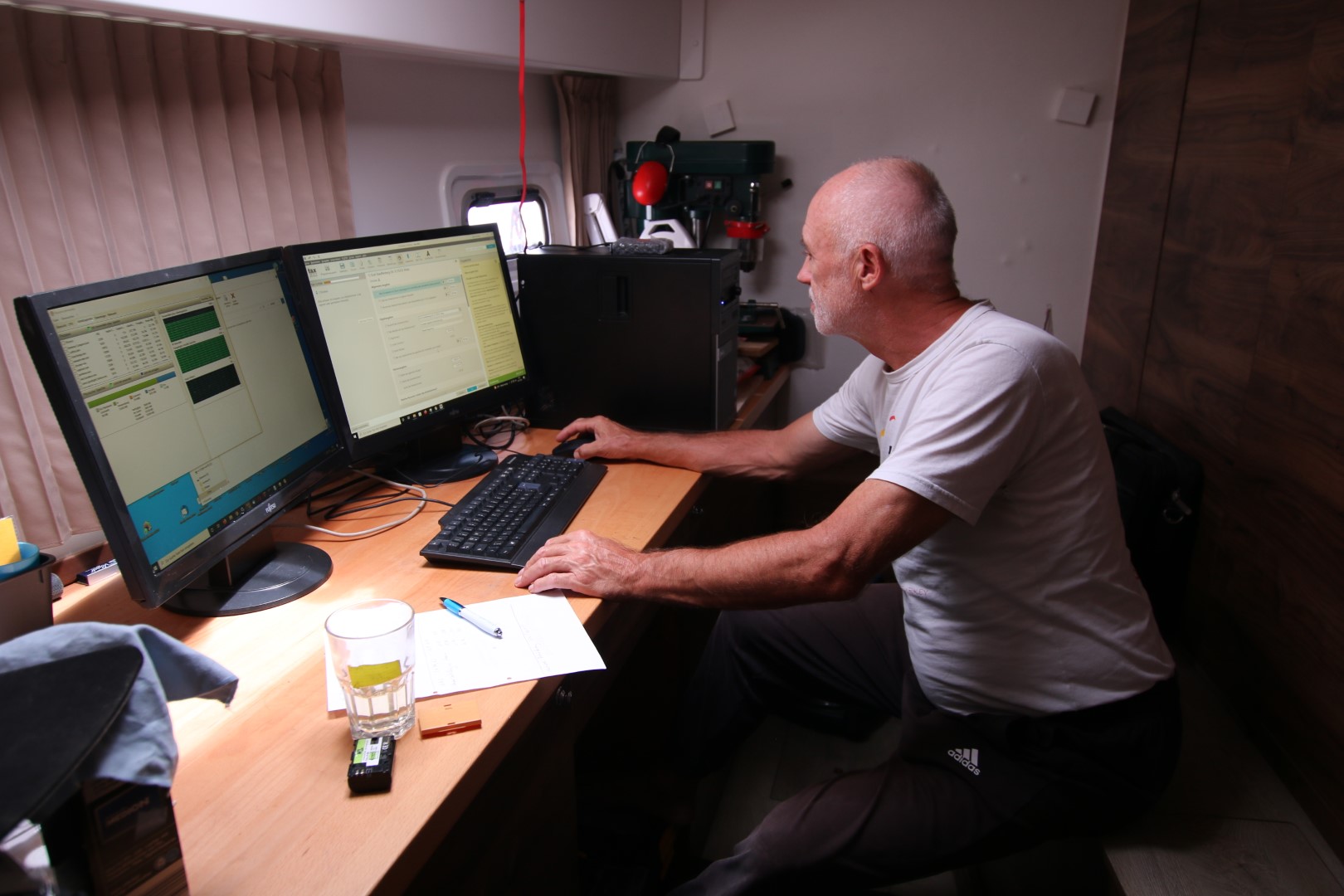 Da Yoshi sich ein Teil eines Zahnes abgebrochen hat, muss er heute früh zum Zahnarzt. Das Wetter ist eh nicht gut, ich der Nacht hat es auch geregnet. Da bietet es sich an, einen vollen Büro-Tag einzulegen. Die Steuererklärung drückt mich auch. Und den Rechner bekomme ich am Morgen dann doch zum stabilen Laufen. Ein Jahr Einlagerung in der feuchten Atmosphäre des Bootes haben ihm nicht gut getan. Aber nach Austausch des RAM und Aus- und Wiedereinbau der Grafik-Karte sind wohl alle Kontakte so, dass er den ganzen Tag arbeitet. Und ich auch: Was die alles wissen wollen! Und natürlich liegen etliche Dokumente eingelagert in Wedel oder Dahl….