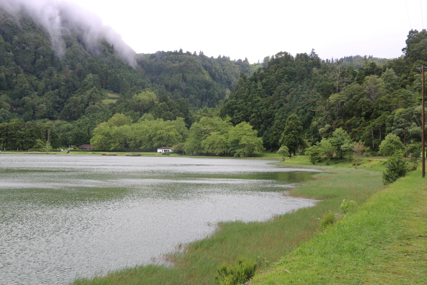 Nach den vielen Aufnahmen dann doch noch ein offenes Cafe gefunden. Immer wieder macht es Spaß: Für 2 Galao (Milchkaffee), ein Nata (portugiesische Süßspeisenspezialität) und ein Sandwich: 4,40 € - alles zusammen. Und wir beschließen, die Runde um „den See“ zu machen: Da soll ein weiteres Geysir-Gebiet sein und es soll überhaupt sehr hübsch sein.